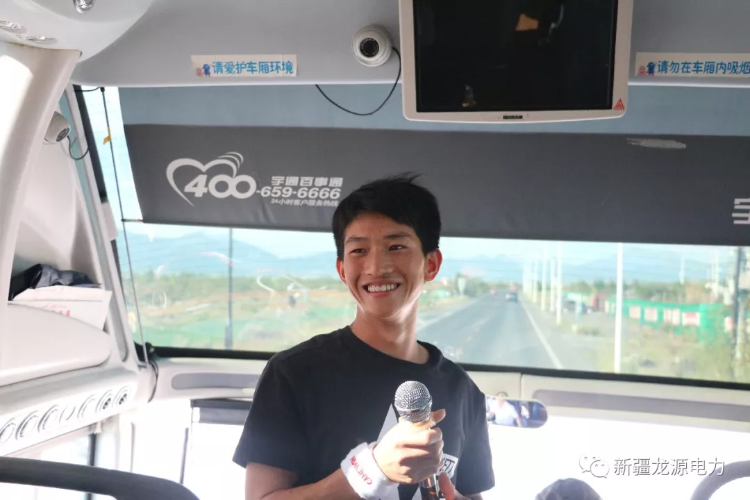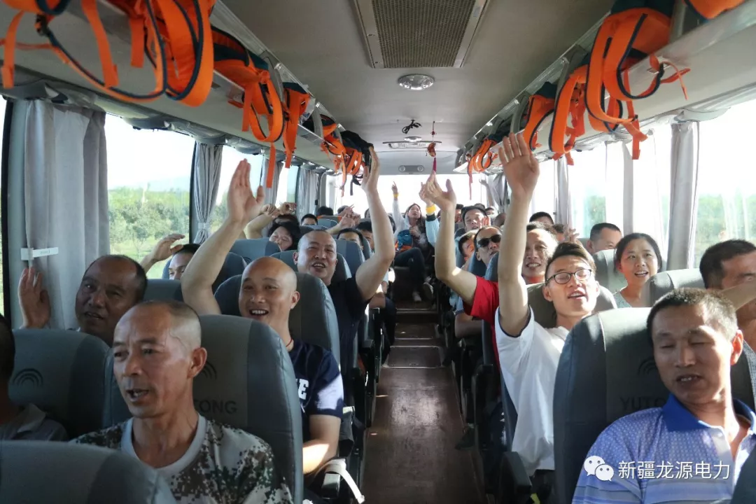 我們將要去往烏魯木齊的避暑圣地南山。公司安排了兩輛大巴車,一路上大家互動,一起娛樂,讓本來平凡的車廂內憑添了幾分熱鬧的色彩。我們見識了新疆的土味笑話,聽到了充滿川味繞口令,還一起欣賞了更多美妙的歌曲。車廂內其樂融融。