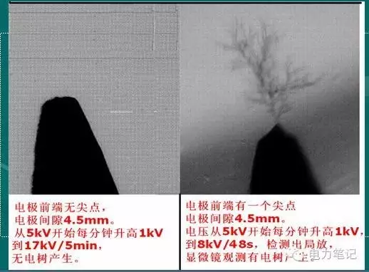 試驗(yàn):針板電極試驗(yàn)、氣隙更易產(chǎn)生電樹(shù)