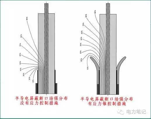 在進(jìn)行電纜終端和對(duì)接頭制作中都有處理半導(dǎo)體屏蔽層,這是接頭質(zhì)量的關(guān)鍵。此處是場(chǎng)強(qiáng)突變的部位,如果處理工藝水平不高,投入運(yùn)行后對(duì)絕緣造成損傷,嚴(yán)重的情況在竣工試驗(yàn)中就會(huì)發(fā)生擊穿。
