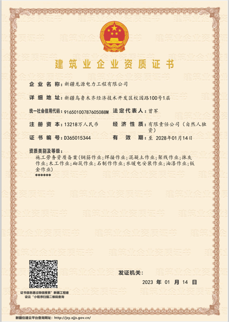 建筑業企業資質貳級證書